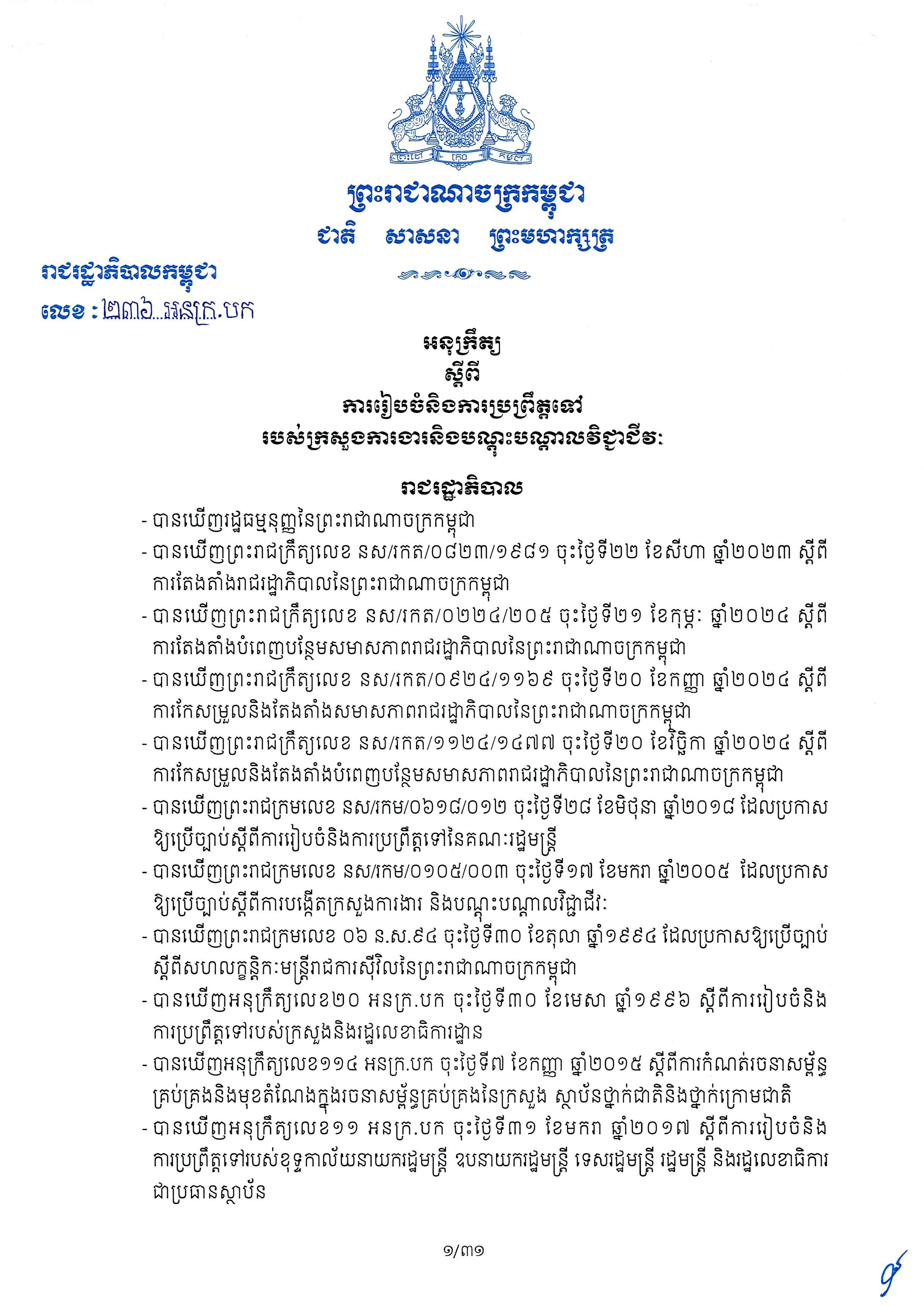 អនុក្រឹត្យ 237 អនក្រ.បក ស្ដីពីការរៀបចំនិងការប្រព្រឹត្តទៅក្រសួងអភិវឌ្ឍន៍ជនបទ