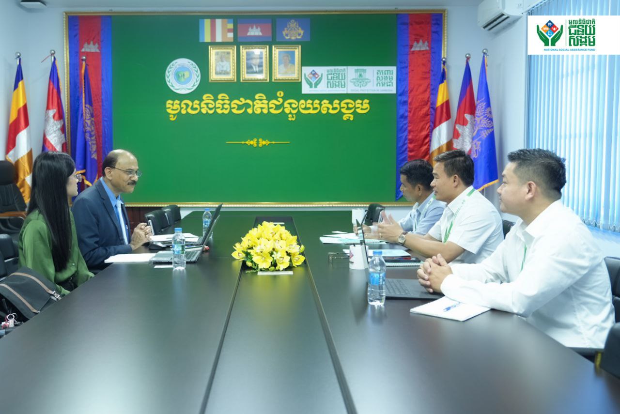 អគារ ម.ជ.ជ. ថ្ងៃព្រហស្បតិ៍ ទី២៩ ខែមករា ឆ្នាំ២០២៦ ដោយទទួលបានការអនុញ្ញាតពីឯកឧត្តម ស៊ឹម សុធន ប្រតិភូរាជរដ្ឋាភិបាលកម្ពុជាទទួលបន្ទុកជាអគ្គនាយកមូលនិធិជាតិជំនួយសង្គម លោក ហួ តុលា អគ្គនាយករង បានអញ្ជើញជួបជាមួយលោកបណ្ឌិត TapasR.Dash ទីប្រឹក្សាស្រាវជ្រាវ និងជាសាស្រ្តាចារ្យផ្នែកសេដ្ឋកិច្ច តំណាងអង្គការអុកស្វាម (OXFAM) ក្នុងកិច្ចពិភាក្សាស្វែងយល់អំពីក្របខណ្ឌគោលនយោបាយជាតិគាំពារសង្គម ផ្តោតលើកម្មវិធីជាតិជំនួយសង្គម។ កិច្ចពិភាក្សានេះមានគោលបំណងស្វែងយល់ពីគម្លាត ដំណោះស្រាយបញ្ហាប្រឈម និងពង្រីកកិច្ចសហប្រតិបត្តិការរវាងមូលនិធិជាតិជំនួយសង្គម ជាមួយអង្គការអុកស្វាម និងសម្ព័ន្ធ SP4ALL ដោយផ្ដោតលើក្របខណ្ឌគោលនយោបាយ យន្តការអភិបាលកិច្ច យន្តការត្រួតពិនិត្យ យន្តការប្រតិបត្តិ និងការវាយតម្លៃជារួមលើការអនុវត្តក្របខណ្ឌគោលនយោបាយជាតិគាំពារសង្គម ផ្តោតលើកម្មវិធីជាតិជំនួយសង្គម។