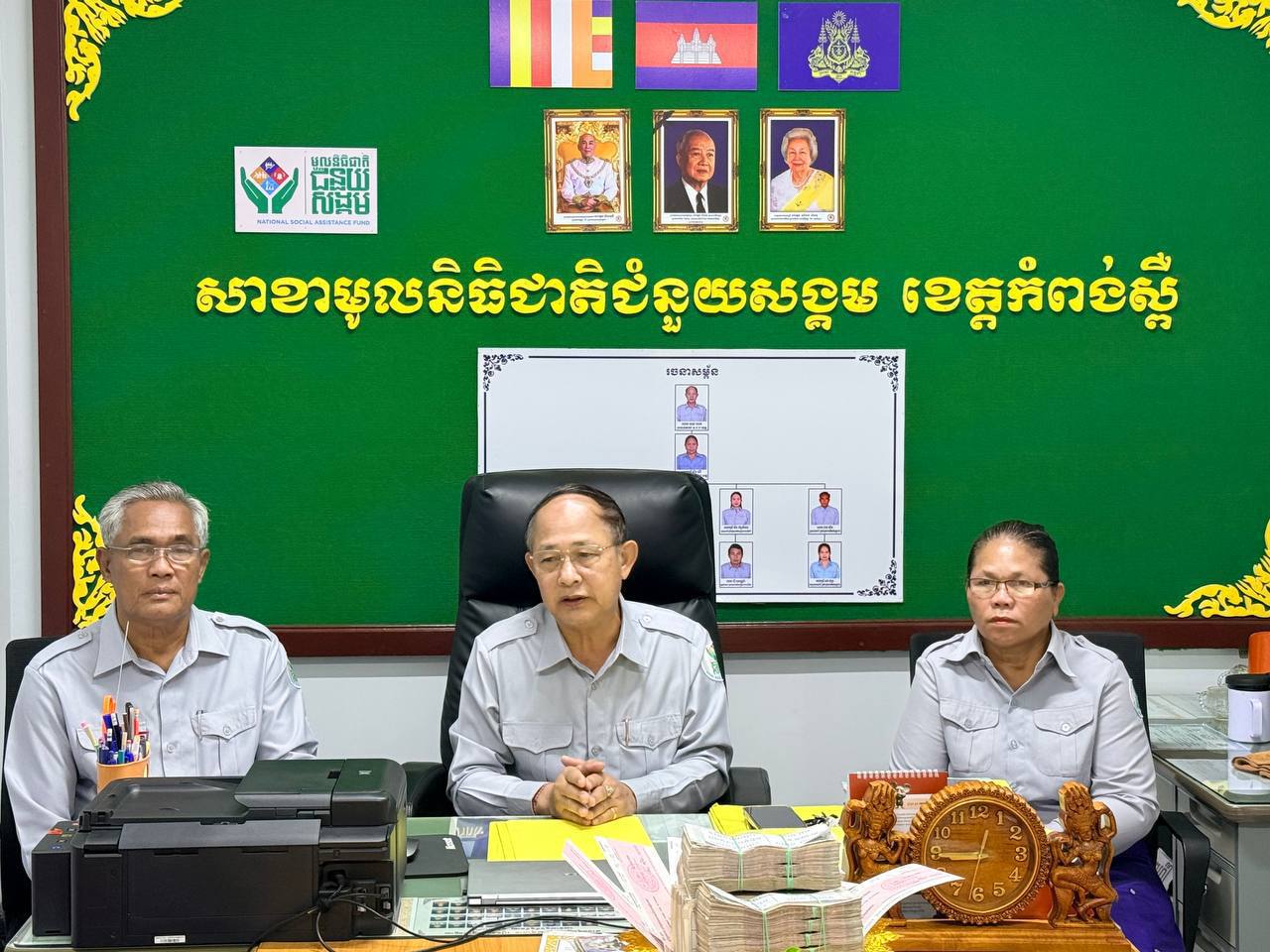 ថ្ងៃទី១៧ ខែកុម្ភៈ ឆ្នាំ២០២៦ សាខា ម.ជ.ជ. ខេត្តកំពង់ស្ពឺ បានបើកប្រាក់គោលនយោបាយរបបសន្តិសុខសង្គមជូនគ្រួសារសពអតីតយុទ្ធជន ចំនួន ៩សព ក្នុងនោះសពនិវត្តជនចំនួន ៧សព ស្មើនឹងទឹកប្រាក់ ៧៩ ៨៩០ ០០០រៀល និងសពជនពិការចំនួន ២សព ស្មើនឹងទឹកប្រាក់ ៤៨ ១២៣ ៦៦០រៀល ដែលមានមូលប្បទានប័ត្រចំនួន ៦សន្លឹក មានថវិកាសរុបចំនួន ១២៨ ០១៣ ៦៦០រៀល។