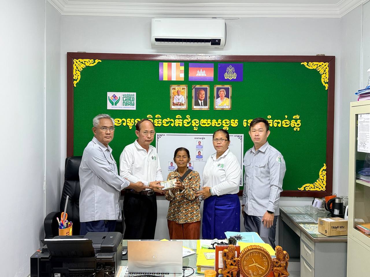 បើកប្រាក់ធានារ៉ាប់រងសង្គម ដែលជាប្រាក់គោលនយោបាយរបស់រាជរដ្ឋភិបាលគ្រួសារសពអតីតយុទ្ធជន ចំនួន ៥សព មកពីខេត្តកែប ខេត្តកំពង់ស្ពឺ និងខេត្តប៉ៃលិន