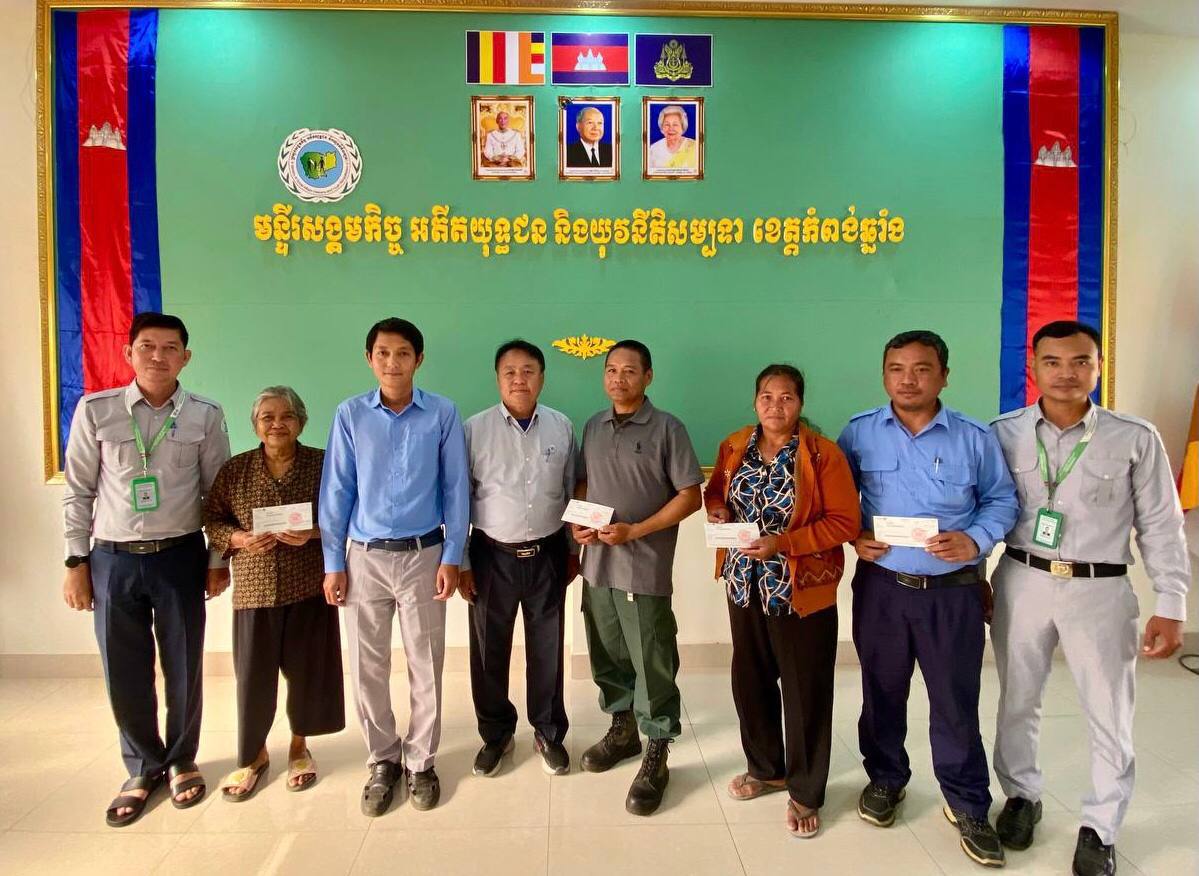 ថ្ងៃទី២១ ខែមករា ឆ្នាំ២០២៦ សាខាមូលនិធិជាតិជំនួយសង្គមខេត្តកំពង់ឆ្នាំង ខេត្តព្រៃវែង បានរៀបចំពិធីបើកផ្តល់ប្រាក់គោលនយោបាយរបបសន្តិសុខសង្គម (ប្រាក់ធានារ៉ាប់រងសង្គម) សរុបចំនួន ២៥នាក់ ក្នុងនោះមាន៖