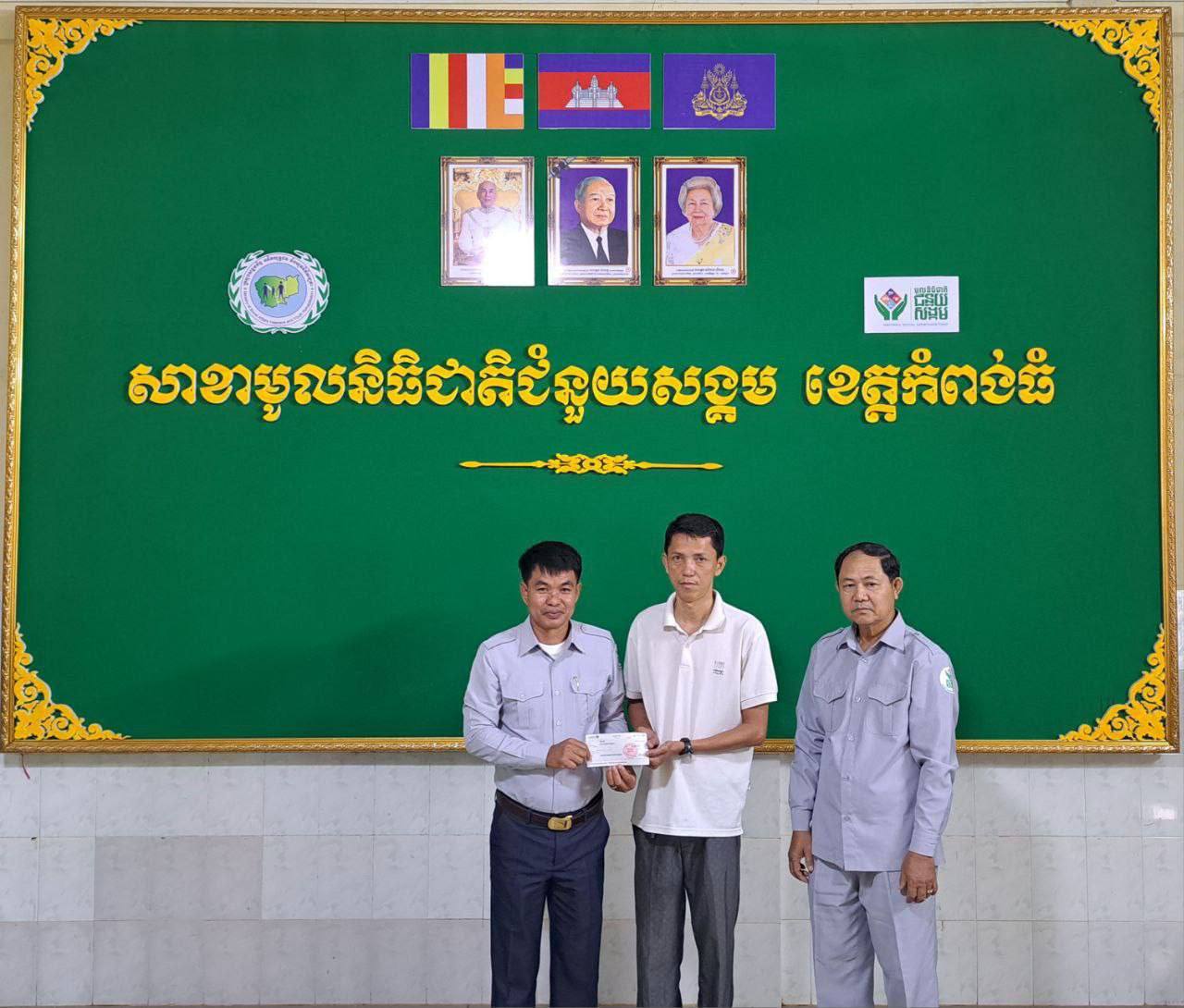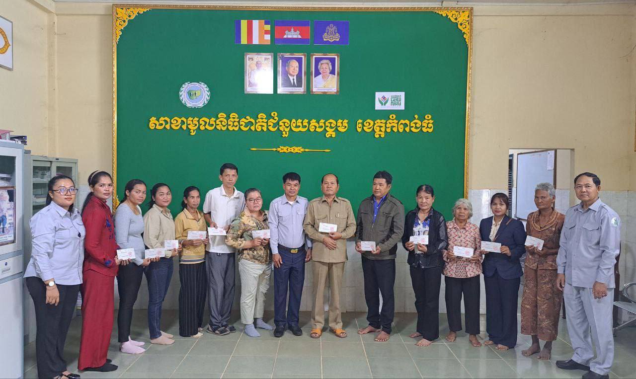 ថ្ងៃទី២០ ខែមករា ឆ្នាំ២០២៦ សាខាមូលនិធិជាតិជំនួយសង្គមខេត្តក្រចេះ កំពង់ធំ និងខេត្តកណ្តាល បានសហការជាមួយមន្ទីរ ស.អ.យខេត្ត រៀបចំពិធីប្រគល់ទទួលប្រាក់ធានារ៉ាប់រងសង្គម ប្រាក់បូជាសព និងប្រាក់ឧបត្ថម្ភ១លើកដំបូង សរុបចំនួន ២៩នាក់ ក្នុងនោះមាន៖