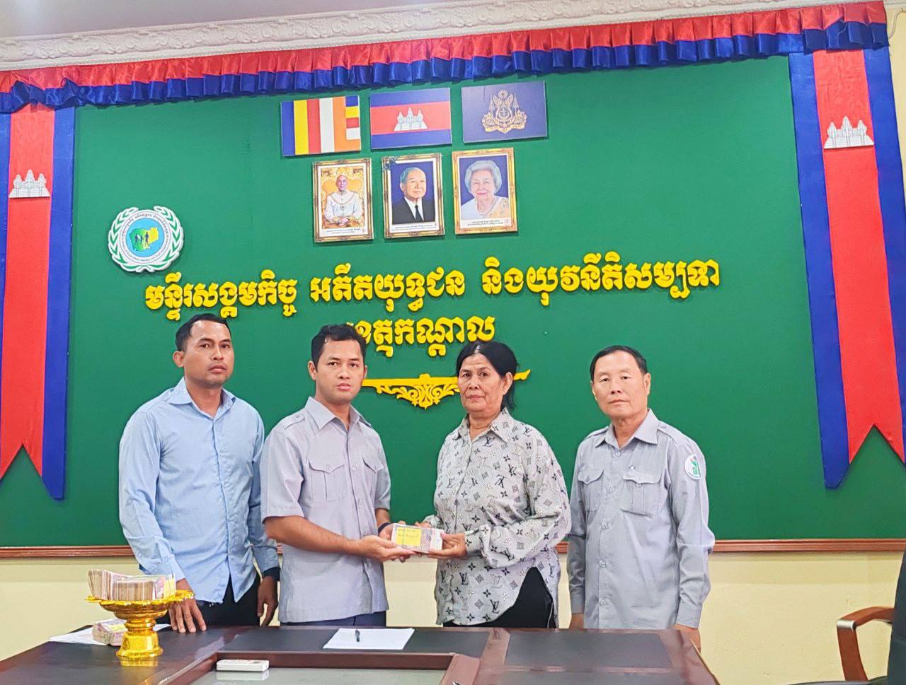-ជូនគ្រួសារសពអតីតមន្រ្តីរាជការស៊ីវិលចំនួន ០៩នាក់ ទឹកប្រាក់សរុបចំនួន ៩១ ២៦០ ០០០រៀល មានគ្រួសារសពនិវត្តជន ចំនួន ០៨នាក់ ទឹកប្រាក់ចំនួន ៨១ ១២០ ០០០រៀល និងគ្រួសារសពជនបាត់បង់សម្បទាវិជ្ជាជីវៈ ចំនួន ០១នាក់ ទឹកប្រាក់ចំនួន ១០ ១៤០ ០០០រៀល